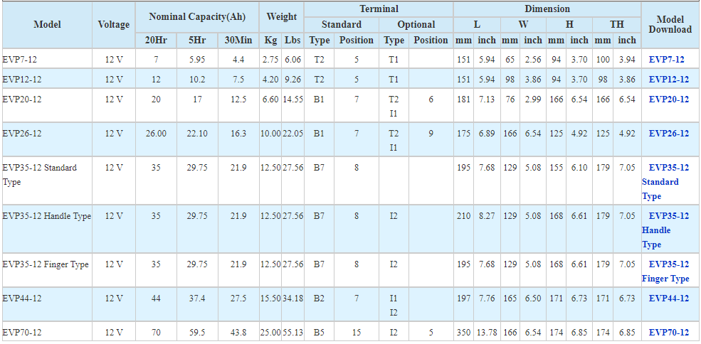 | Model | EVP12-12, EVP20-12, EVP26-12, EVP35-12 Finger Type, EVP35-12 Handle Type, EVP35-12 Standard Type, EVP44-12, EVP7-12, EVP70-12 |