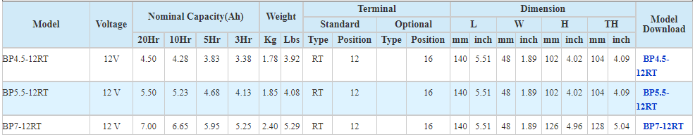 BP4.5-12RT, BP5.5-12RT, BP7-12RT