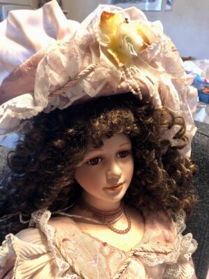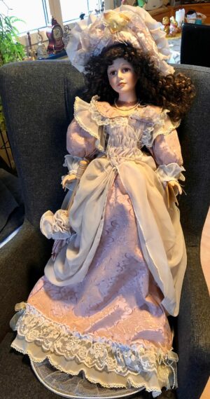 Für Liebhaber und Sammler eine Porzellan-Puppe 80 cm hoch.