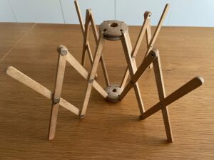 Es ist aus Holz, dreh und ausziehbar.