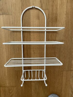 Kleines Bad-Regal mit 3 Ablageflächen zum aufhängen. Ist in der Farbe weiss.