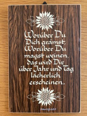 Schönes Schild mit Spruch. Das Material ist Holz. Die Höhe 21 cm. Die Breite 14 cm.