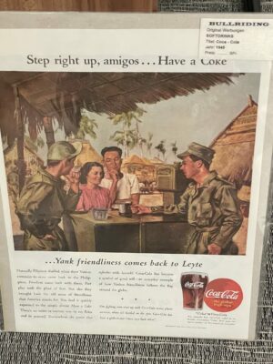 Neu-Werbung Softdrinks Coca-Cola. Jahr 1945 Die Höhe ist 34 cm. Die Breite 25,5 cm.